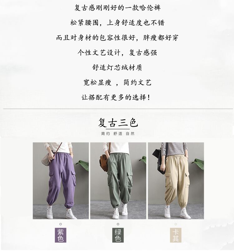 Suyi Lane2020秋のルーズで薄いバージョンタイプの伸縮性ウエスト文芸的ハーレムパンツコーデュロイパンツ女性 エラスティック オータム 秋物 TB2-56 TB2-5696080071328
