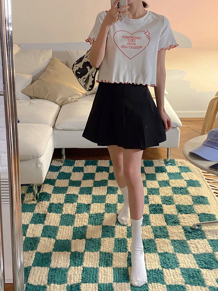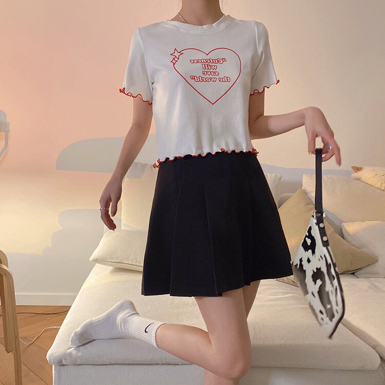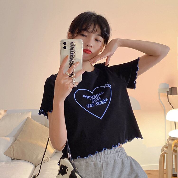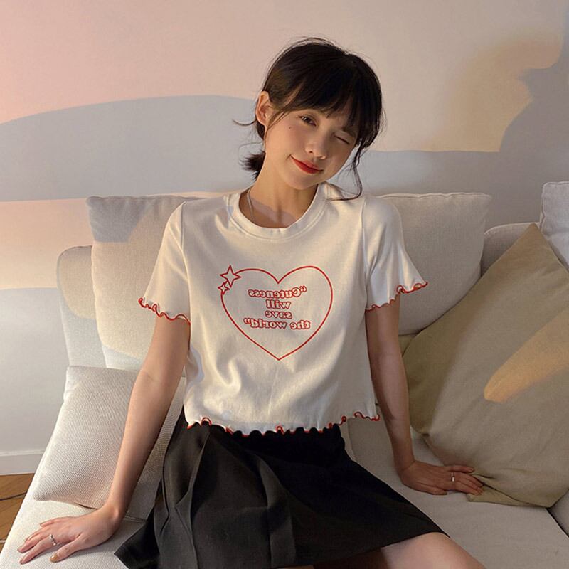ラブレタープリントコットンTシャツ女性2021年夏新しいスタイルのキクラゲルーズハイウエストショートトップインタイド ハイウェスト サマー 夏物 TM2-3 TM2-377170005260