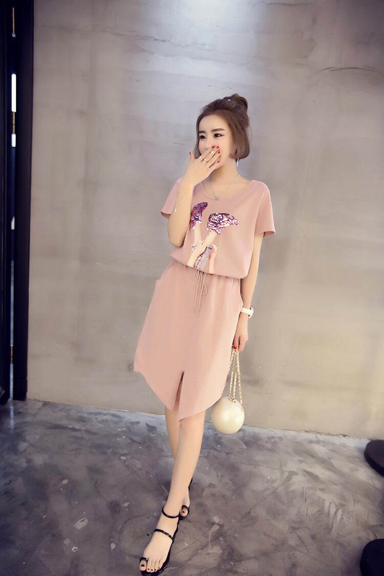 2021年夏新バージョンのワイルドシンピンクベーススカートショートスカートスパンコールウエスト半袖ドレス女性春 スプリング 春物 サマー 夏物 TB2-16 TB2-1685426934238