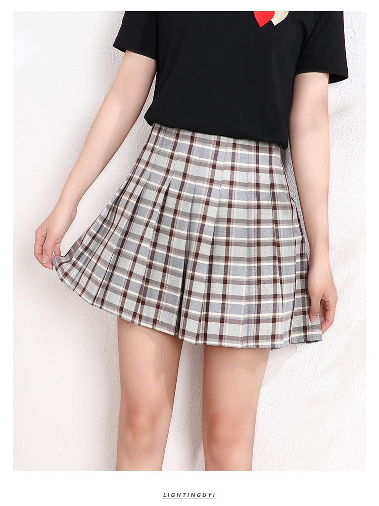 チェック柄Aラインショートスカート女性バストスカート2021年夏新作ラージサイズルーズハイウエストJKプリーツスカート学生トレンド ハイウェスト 大きめサイズ サマー 夏物 TB2-16 TB2-1623335515738