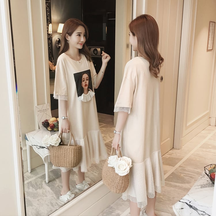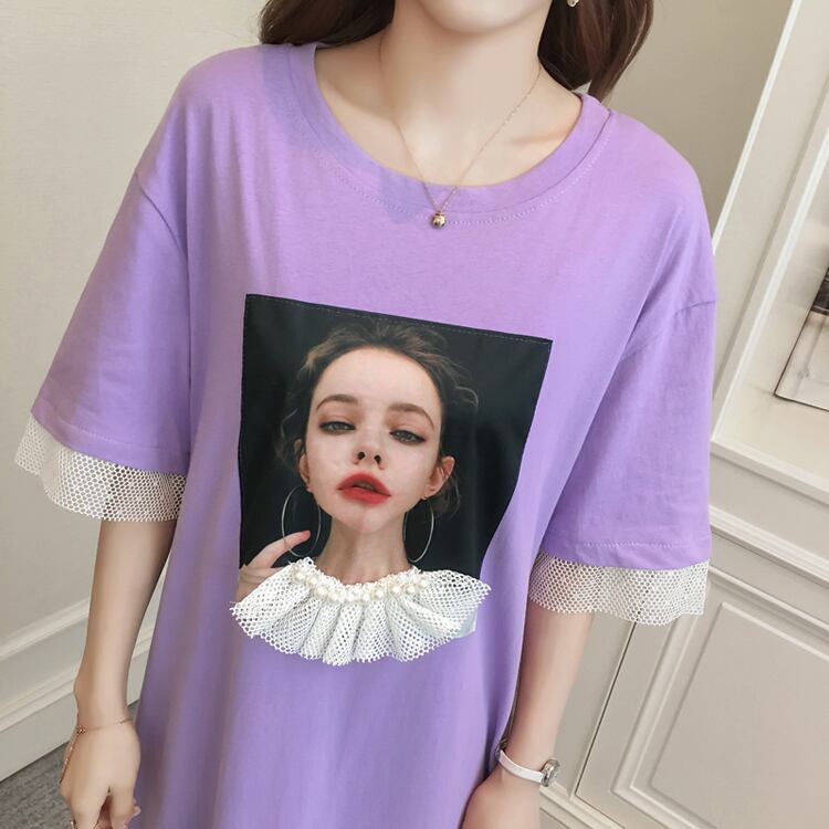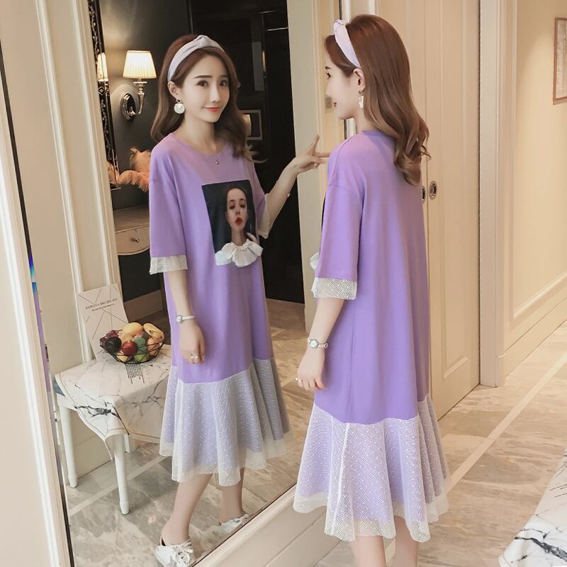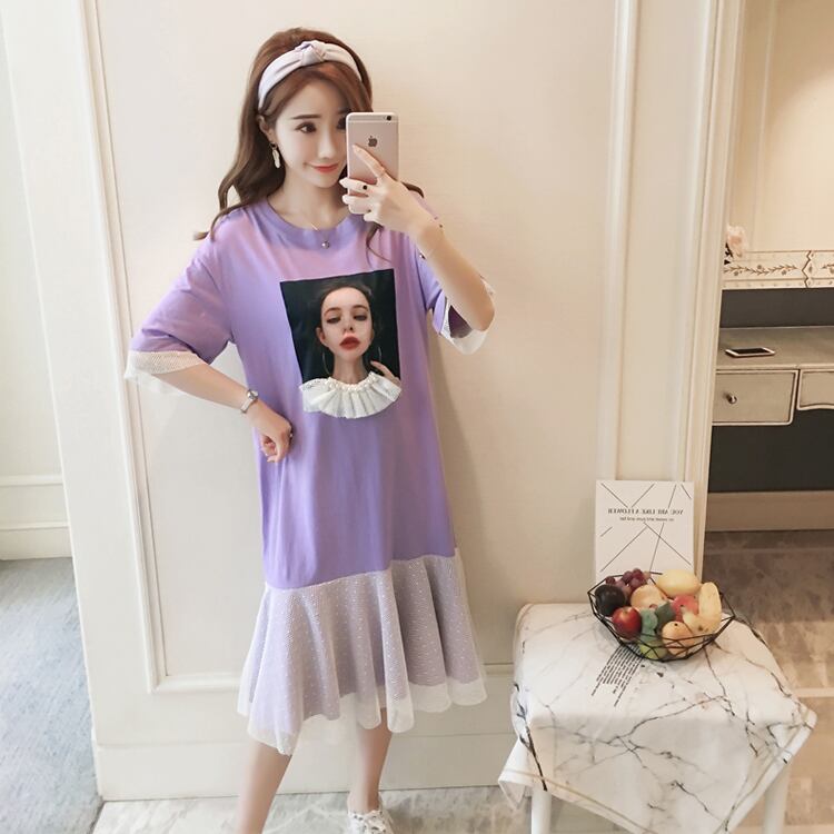 2021年夏パープルレディースピュアコットン半袖ミドル丈ワンピースレディースネットガーゼフリルフィッシュテールスカートタイド サマー 夏物 TB2-16 TB2-1636484887750