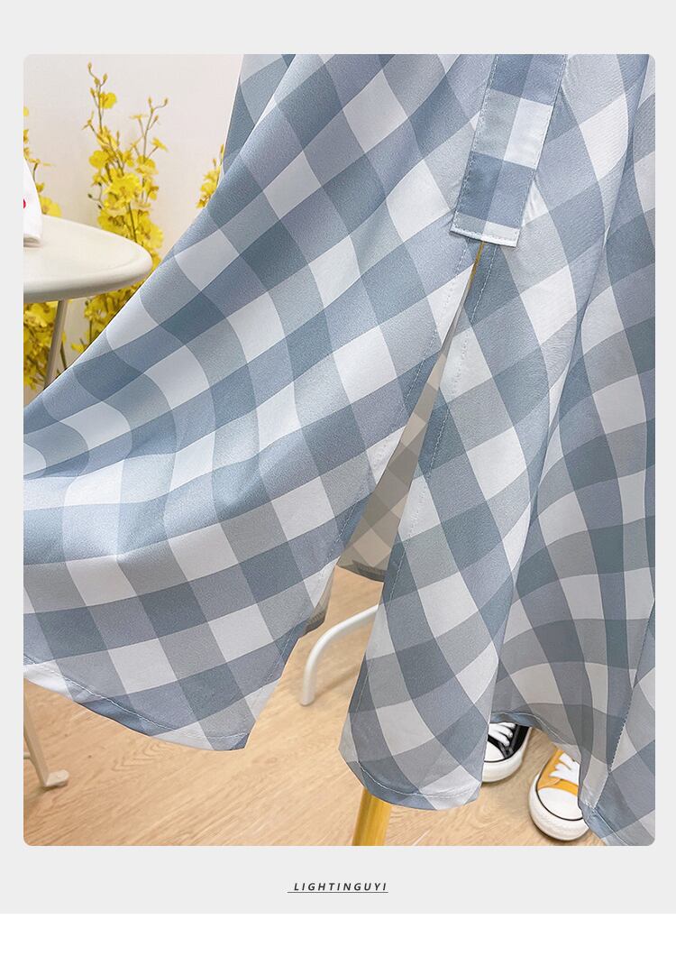2021年新作フレンチ初恋シフォン半袖チェック柄ワンピースサマードレススクエアカラーファットmmラージサイズベースロングスカート 大きめサイズ 夏物 スクウェア TB2-16 TB2-1685981547010