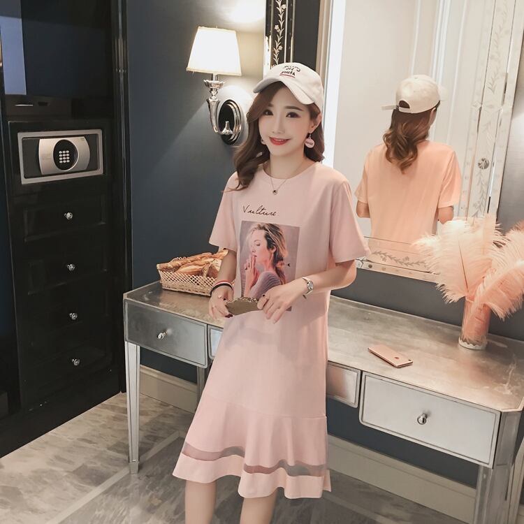 ネットヤーン気質INSスーパーファイアフィッシュテールドレスミドル丈ルーズ半袖Tシャツスカート女性春潮の夏バージョン スプリング 春物 サマー 夏物 TB2-16 TB2-1650927339434
