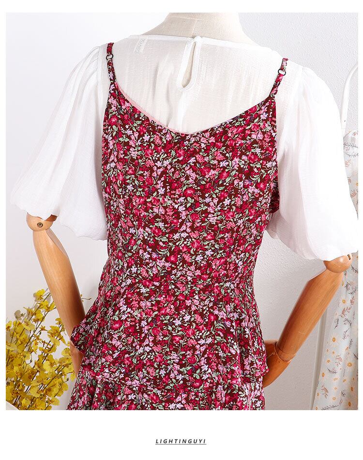 2021年の新しい花柄のドレス、洋風のサマードレス、ミドル丈、年齢を減らす、大きいサイズ、ウエスト、サスペンダー、ロングスカート 大きめサイズ 夏物 TB2-16 TB2-1628008210227
