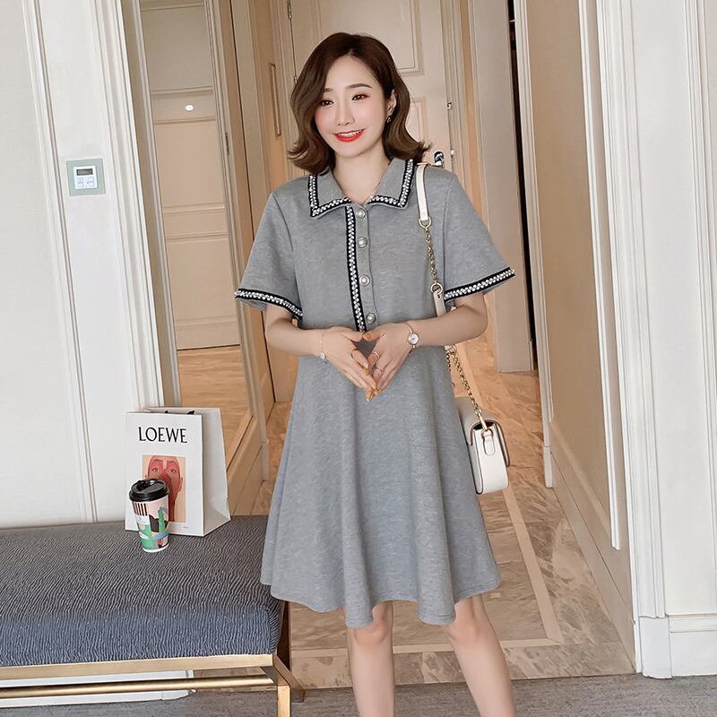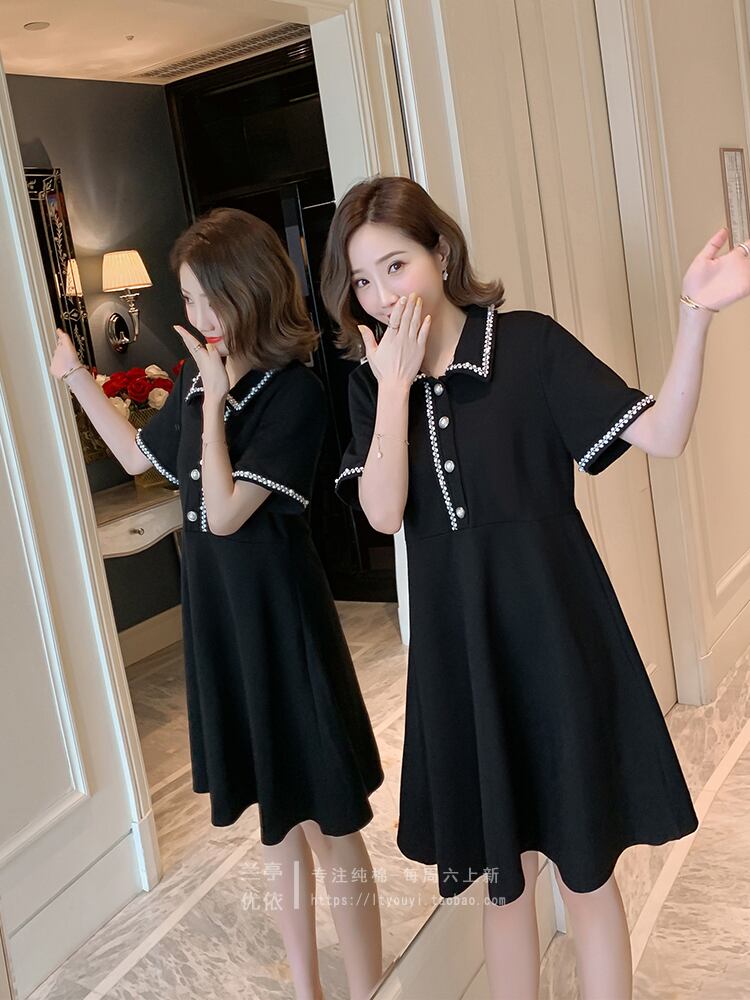 2021年春秋商品ミドル丈コットンTシャツレディースラージサイズブラックAラインスカートポロカラー半袖トップス潮夏 大きめサイズ スプリング 春物 サマー 夏物 オータム 秋物 TB2-16 TB2-1644136887408