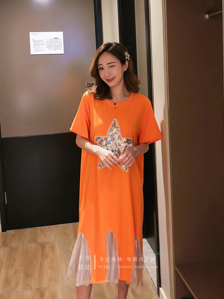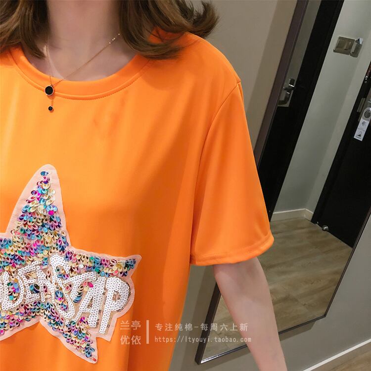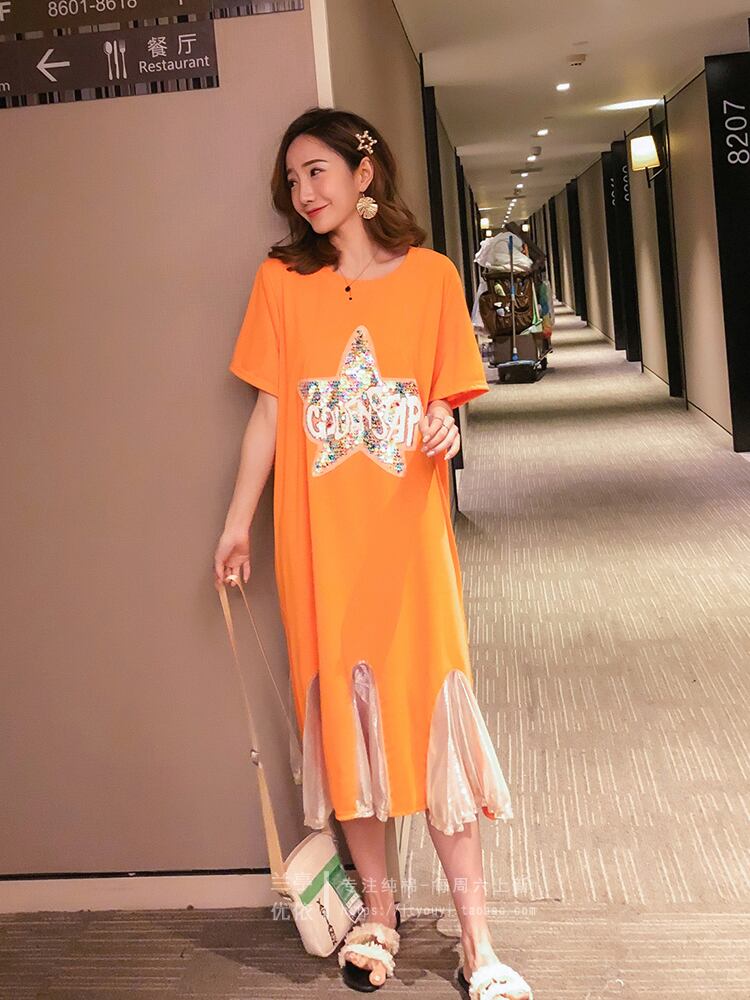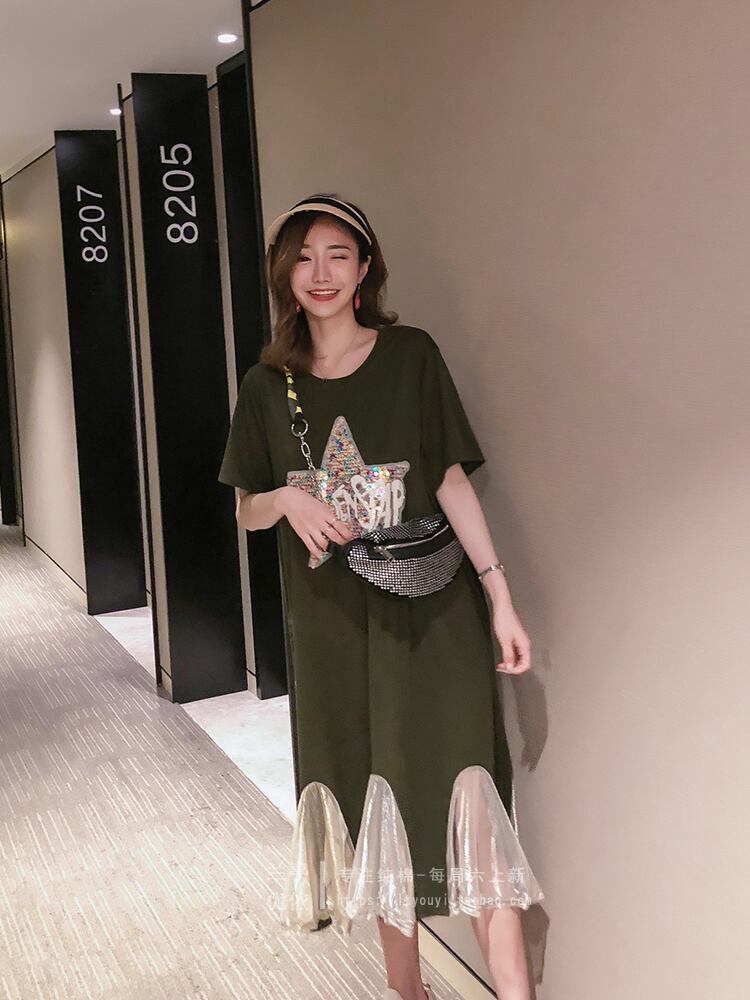 2021年夏プラスサイズレディースステッチドレススパンコールミドル丈コットン半袖Tシャツスカートトップ春 大きめサイズ スプリング 春物 サマー 夏物 TB2-16 TB2-161310065565