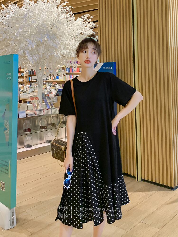春先、プラスサイズ、太さ、年齢、長袖Tシャツスカート、水玉シフォンステッチ、コットンボトミングスカート、トップス、夏 ロング 大きめサイズ スプリング 春物 サマー 夏物 TB2-16 TB2-1682958205295