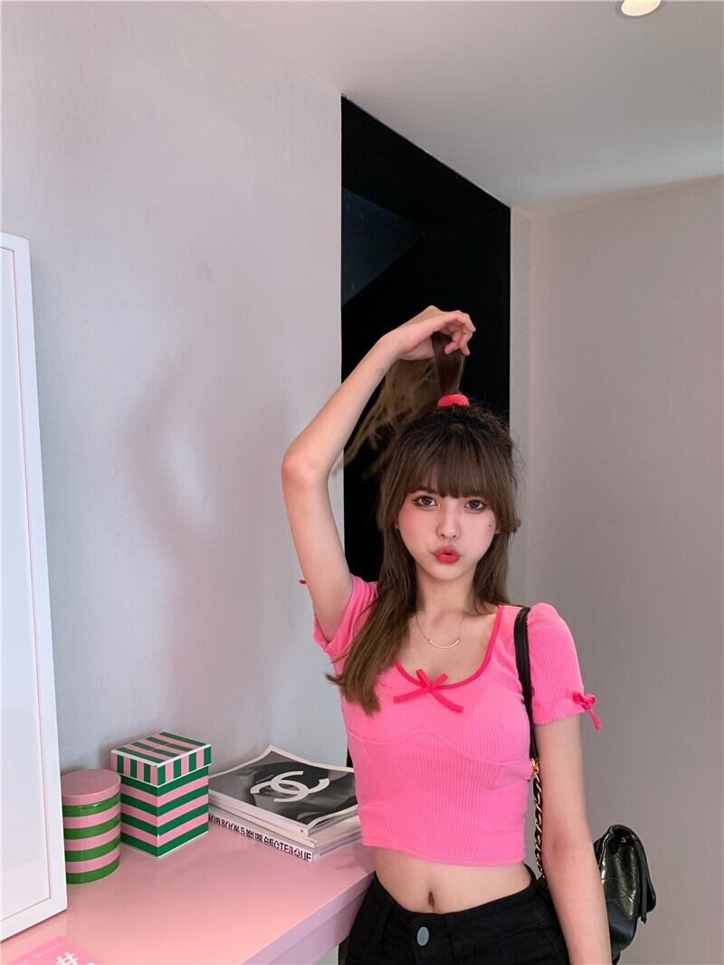 ウエストスリムTシャツ女性春夏新作半袖ニッチショートセクシーボウ学生カジュアルトップインタイド リボン スプリング 春物 サマー 夏物 TB2-6 TB2-622741286281