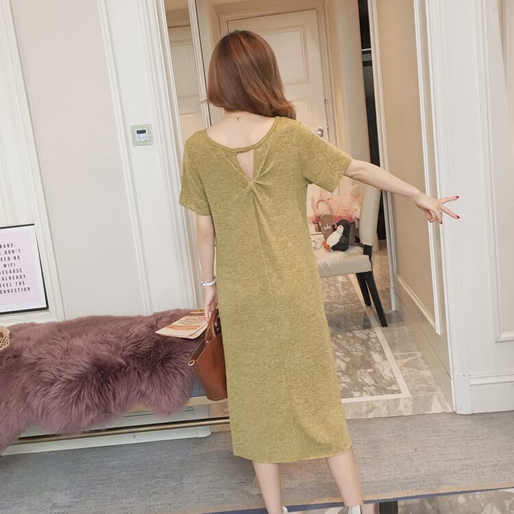 スプリット半袖オーバーザニーロングスカートスモールセクシーリークバックパックヒップボトミングスカートラージサイズルーズで薄い女性の潮の夏のバージョン 大きめサイズ サマー 夏物 リュック TB2-16 TB2-1680018239614