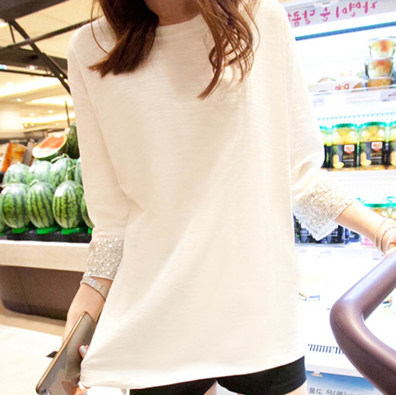 2021年春新バージョンの白いボトミングシャツスパンコールミッドレングスミッドスリーブ七分袖Tシャツ女性夏 ホワイト スプリング 春物 サマー 夏物 TB2-16 TB2-1651824018721