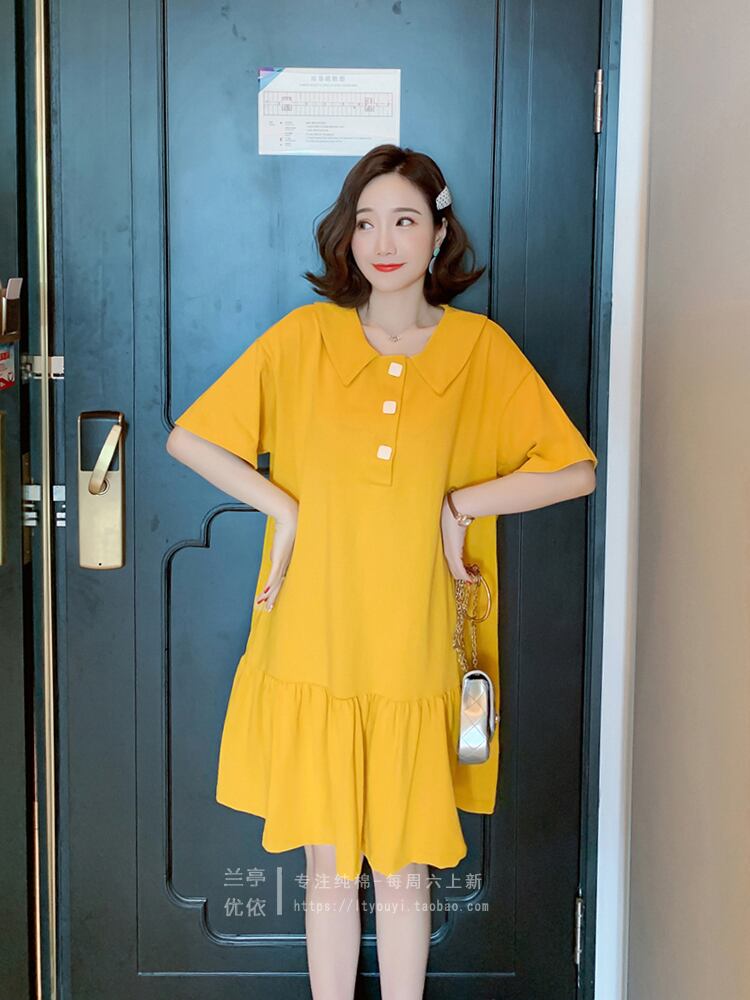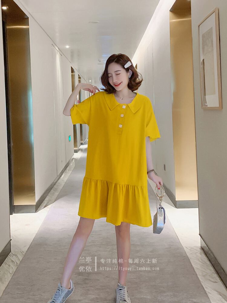 2021年夏の新作ミドル丈スモールAラインスカートワンピースフィッシュテールスカート年齢削減半袖コットンラペルTシャツスカート サマー 夏物 TB2-16 TB2-1669770161659