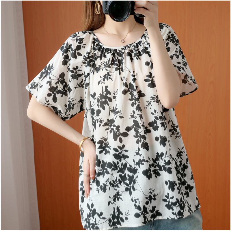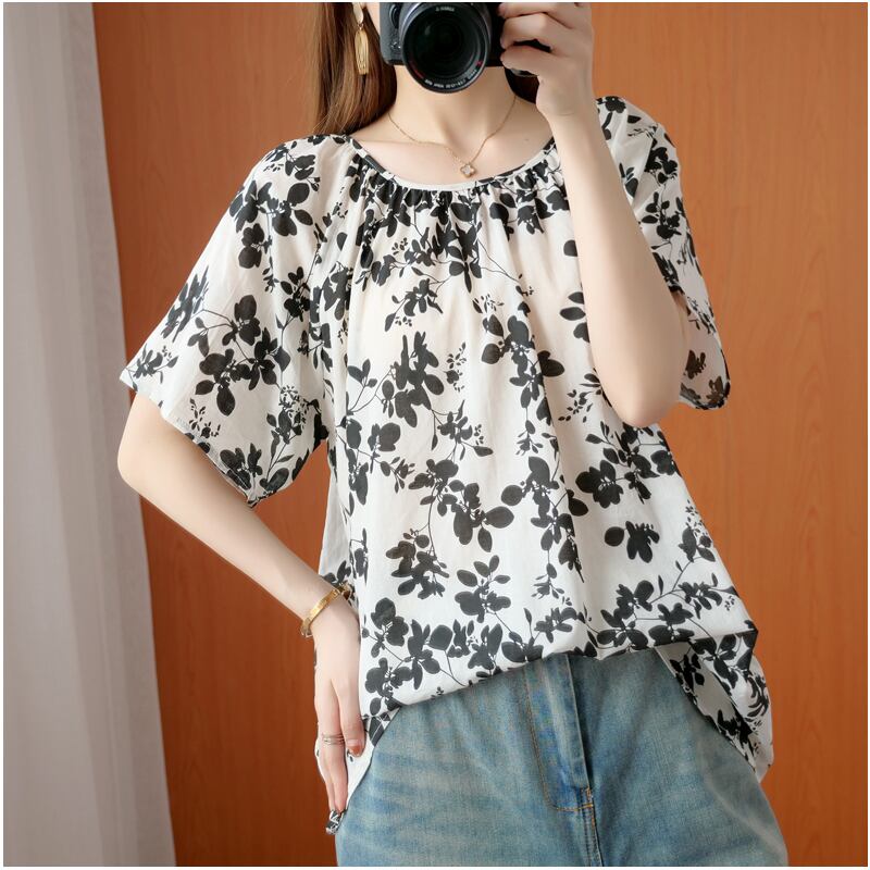 ファットシスタープラスサイズの女性の半袖Tシャツ夏の新しいルーズレトロプリントカバー肉は薄いベビーシャツトップでした 大きめサイズ サマー 夏物 TB2-50 TB2-5042331109452