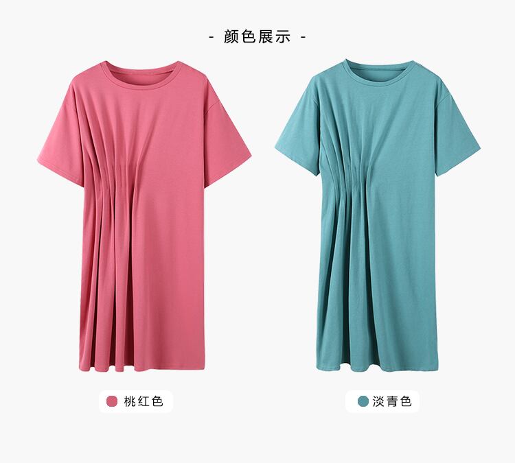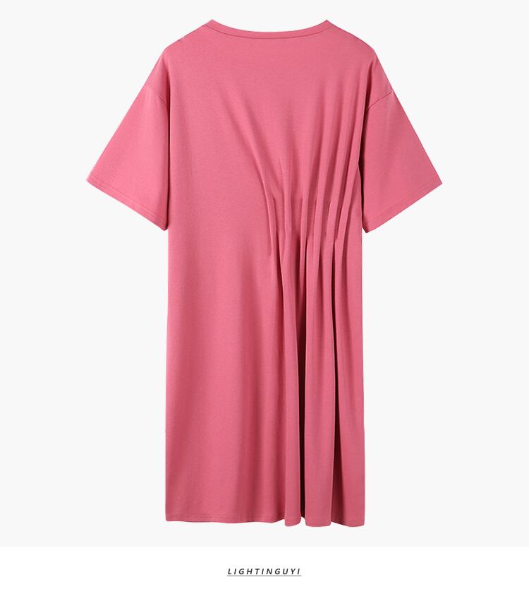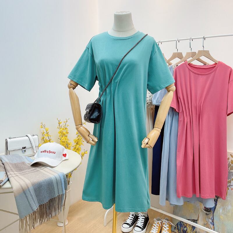 2021年の新しい人気のサマードレスオーバーニーロング半袖Tシャツスカートプラスサイズの女性のウエストプリーツAラインドレス 大きめサイズ 夏物 TB2-16 TB2-1675189888855