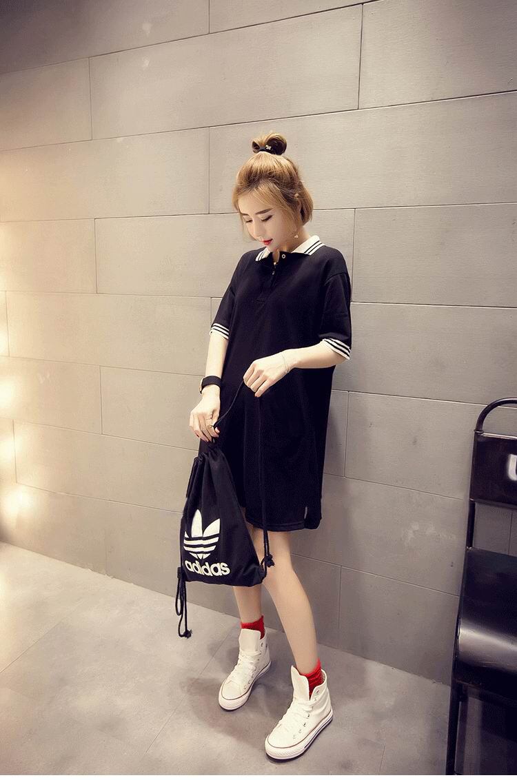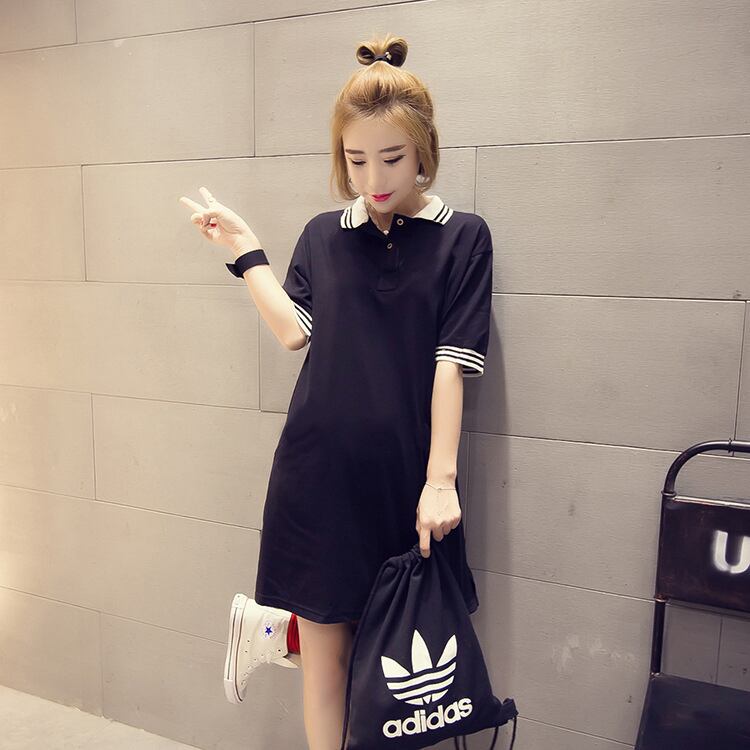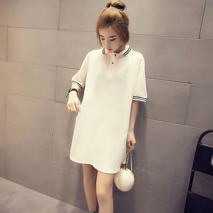 ロング半袖コットンTシャツスカートスチューデントシャツストレートポロシャツボトミングシャツブラックスプリングのラージサイズのサマーバージョン 大きめサイズ 春物 夏物 TB2-16 TB2-1650554116627