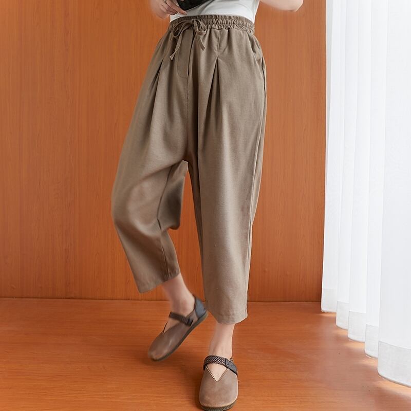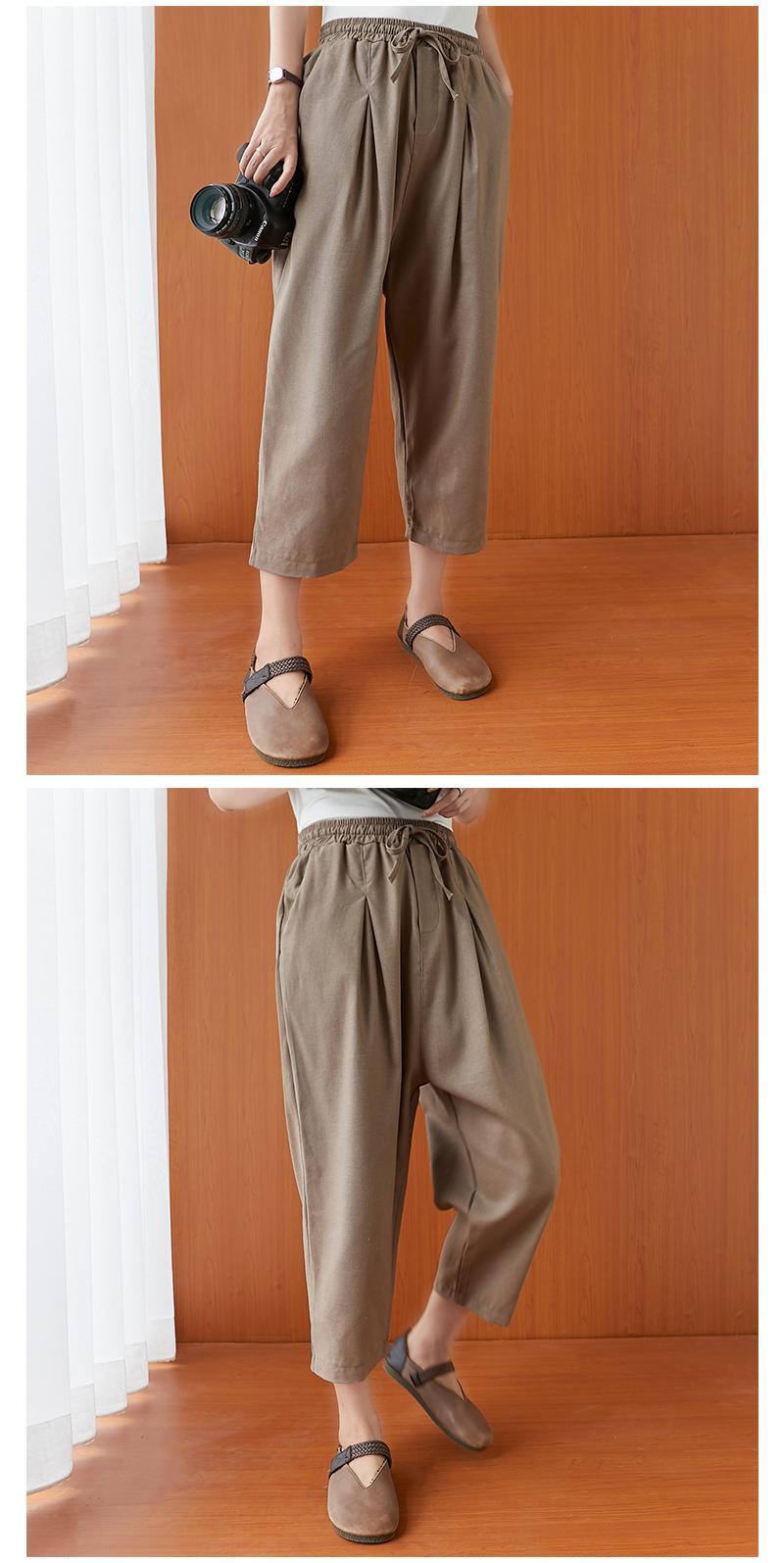 ファットシスター秋のリネンフィートパンツ伸縮性ウエストネクタイカジュアルルーズルック薄くて肉付きの良いハーレムパンツプラスサイズの婦人服 エラスティック 大きめサイズ オータム 秋物 TB2-53 TB2-5391173699904