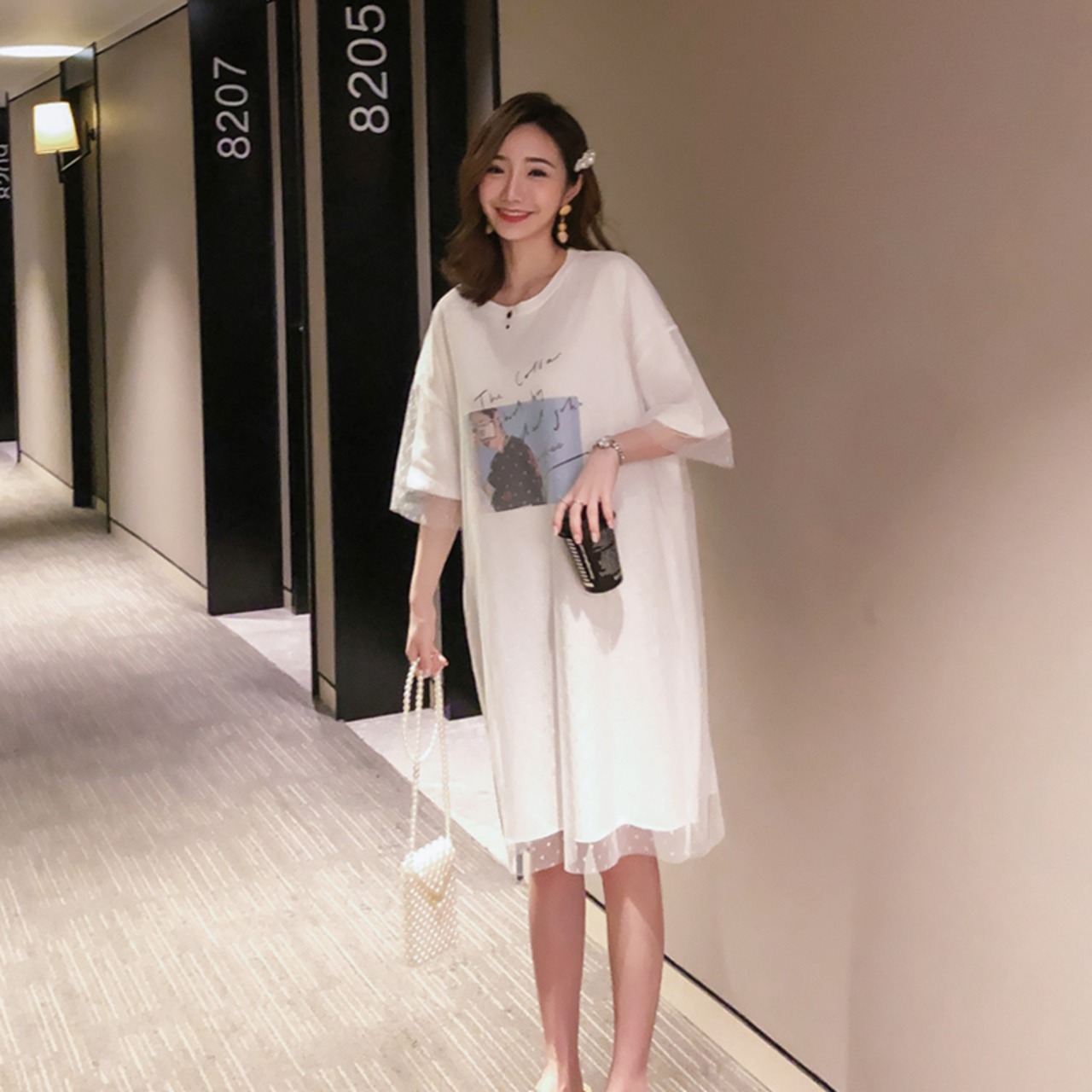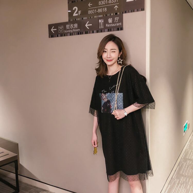 2021年新商品ミドル丈半袖Tシャツスカートトップネットガーゼスリーブネットレッドフェイクツーピースワンピースサマータイド 夏物 TB2-16 TB2-1624062777417