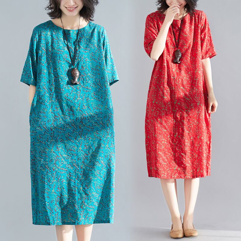 2021年夏の新しいスカートの文学的なレトロなエスニックスタイルのルーズラウンドネックの薄い綿とリネンの半袖プラスサイズのドレス コットン 大きめサイズ サマー 夏物 Oネック TB2-12 TB2-1245308952942