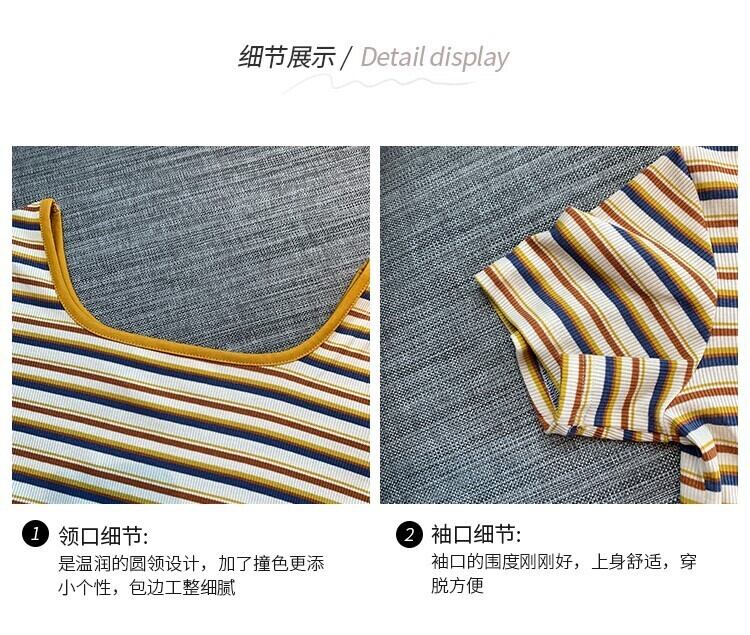 レインボーストライプ長袖Tシャツレディース2020春秋新ネットレッドスリムフィット初秋トップスタイトボトミングシャツ ロング スプリング 春物 オータム 秋物 TB2-6 TB2-670010060940