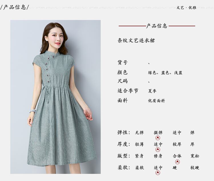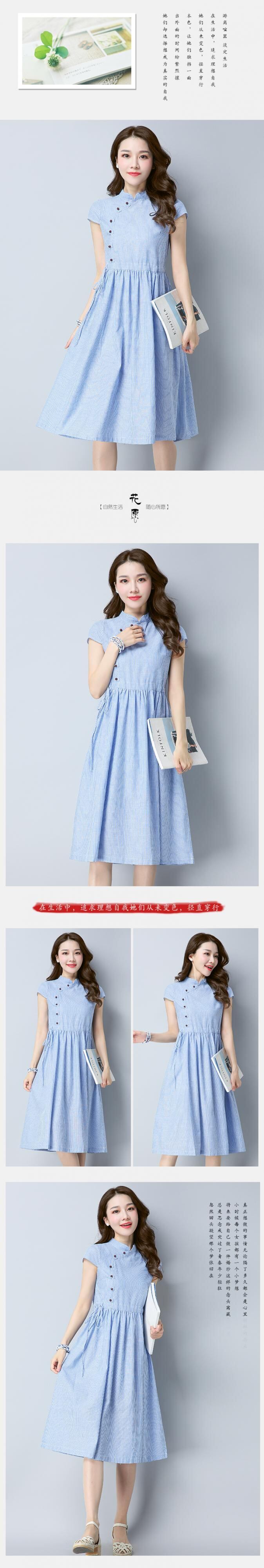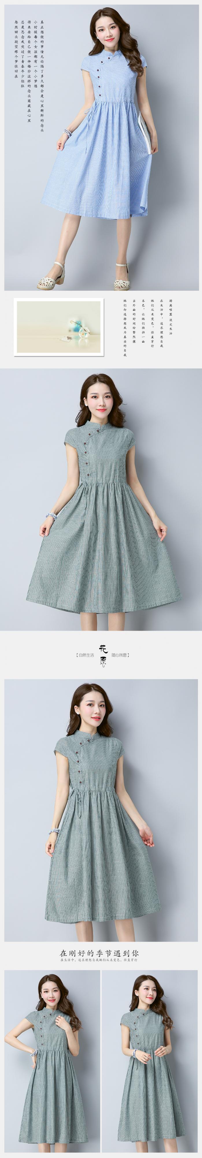 2021年夏の新しいレトロな改良されたチャイナドレスのミドル丈のコットンとリネンのドレス、バックルのスリムなストライプのリネンスカート サマー 夏物 TB2-12 TB2-1255720467016