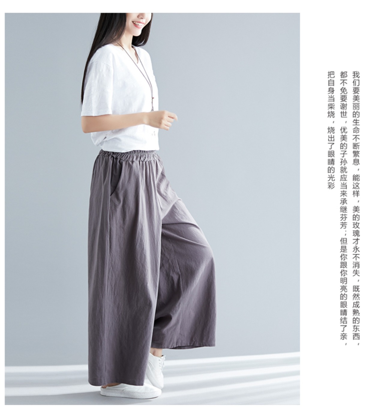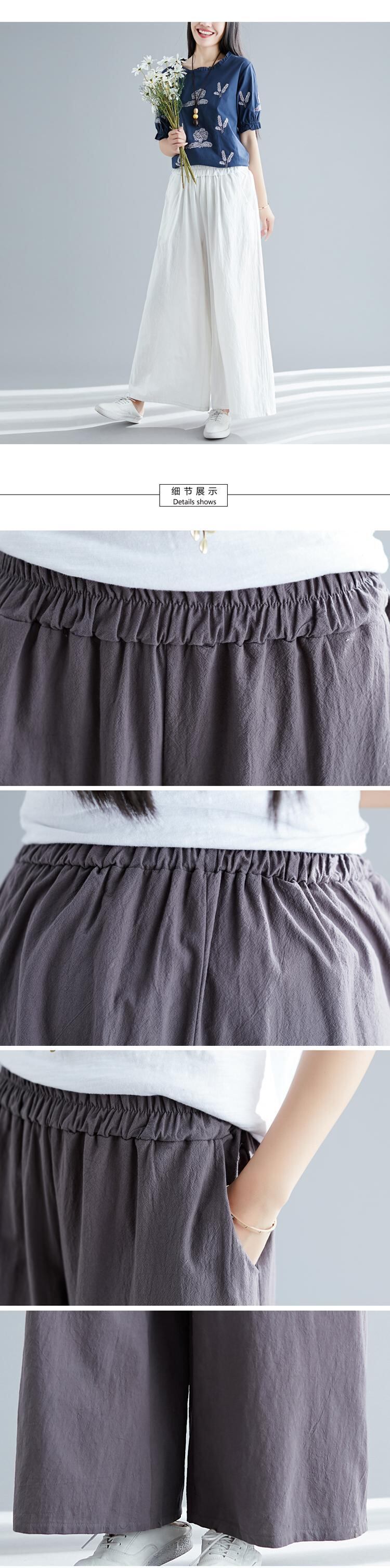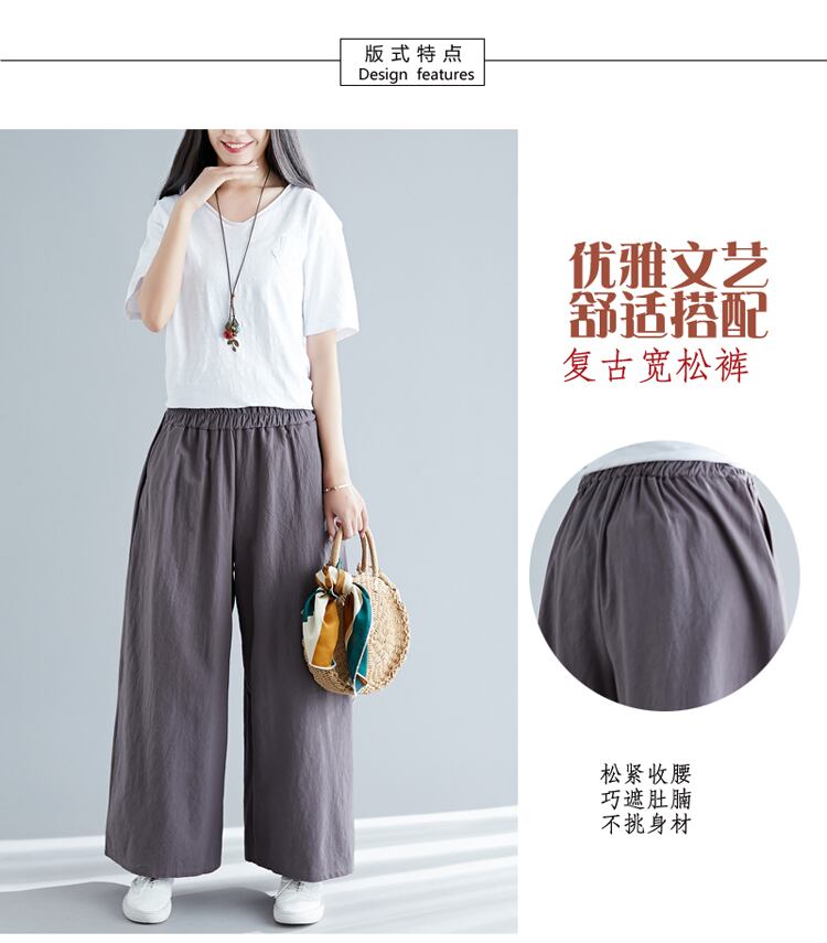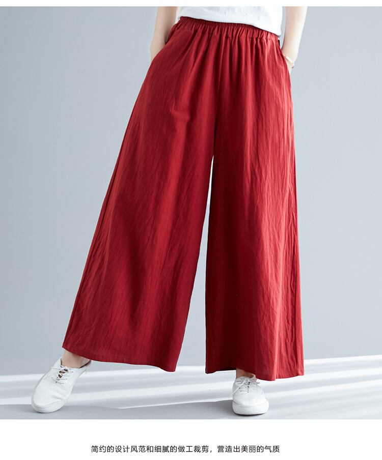 2021年夏のアートファンコットンとリネンの女性用ズボン伸縮性ウエストワイドレッグパンツ無地ルーズハイウエストパンツラージサイズカジュアルパンツ エラスティック 大きめサイズ サマー 夏物 ソリッドカラー TB2-12 TB2-1281414169415