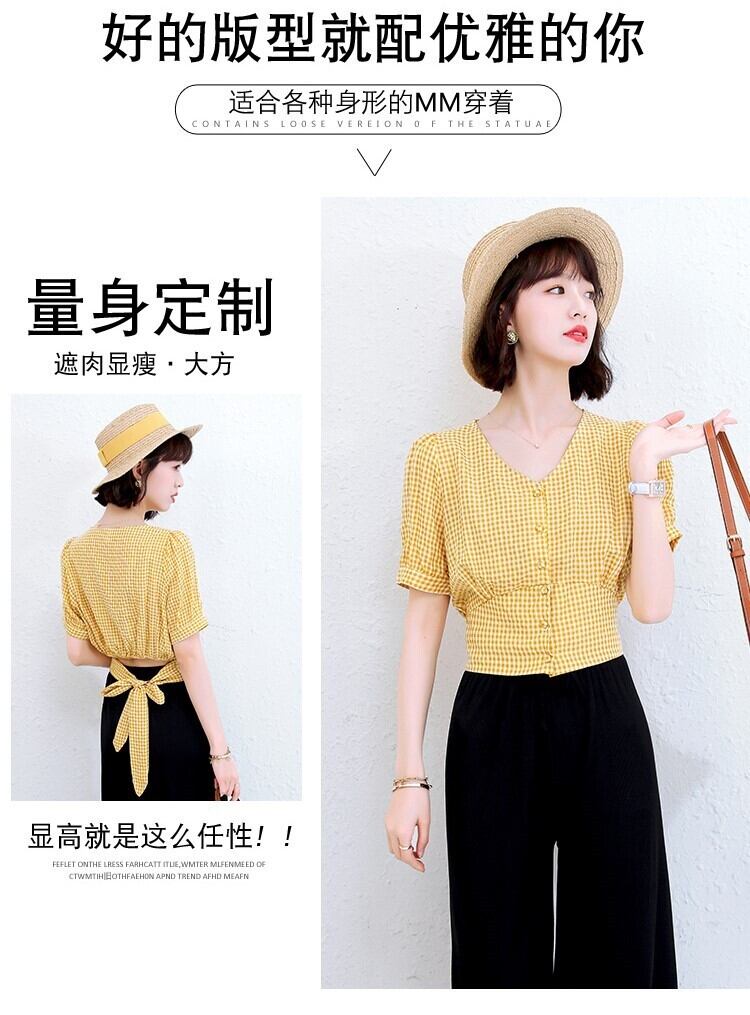 シフォンシャツレディースニュースタイル2021スタイルウエスタンスタイルチェック柄ボウタイカーディガン半袖香港スタイルライトクックブラウス リボン TB2-6 TB2-63594016134