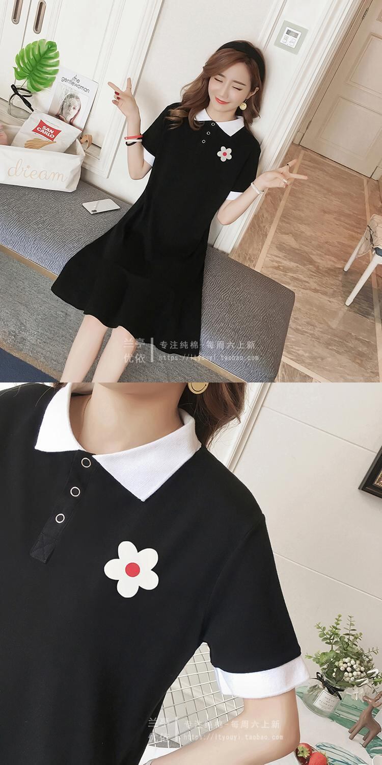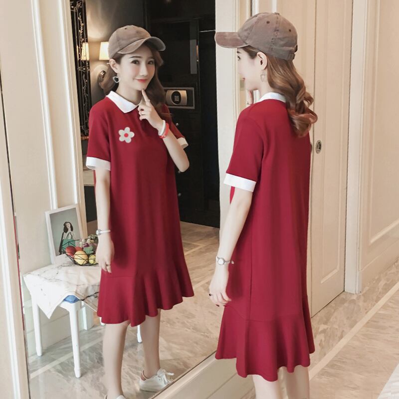 夏の新しいプラスサイズの女性の純綿半袖Tシャツスカート女性のミドル丈ポロカラートップフィッシュテールドレスタイド コットン 大きめサイズ サマー 夏物 ピュア TB2-16 TB2-1699625076584
