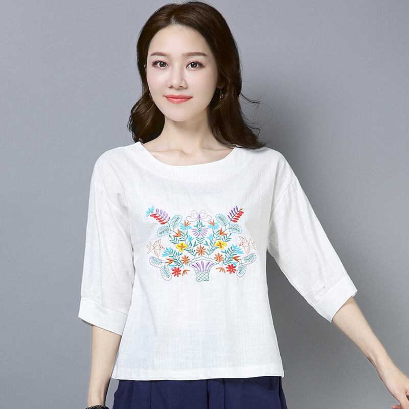 エスニックスタイルのコットンとリネンのトップ5ポイントスリーブTシャツ2021夏の新しいプラスサイズの女性のルーズリネンファッションベース 大きめサイズ サマー 夏物 TB2-12 TB2-1220548906224