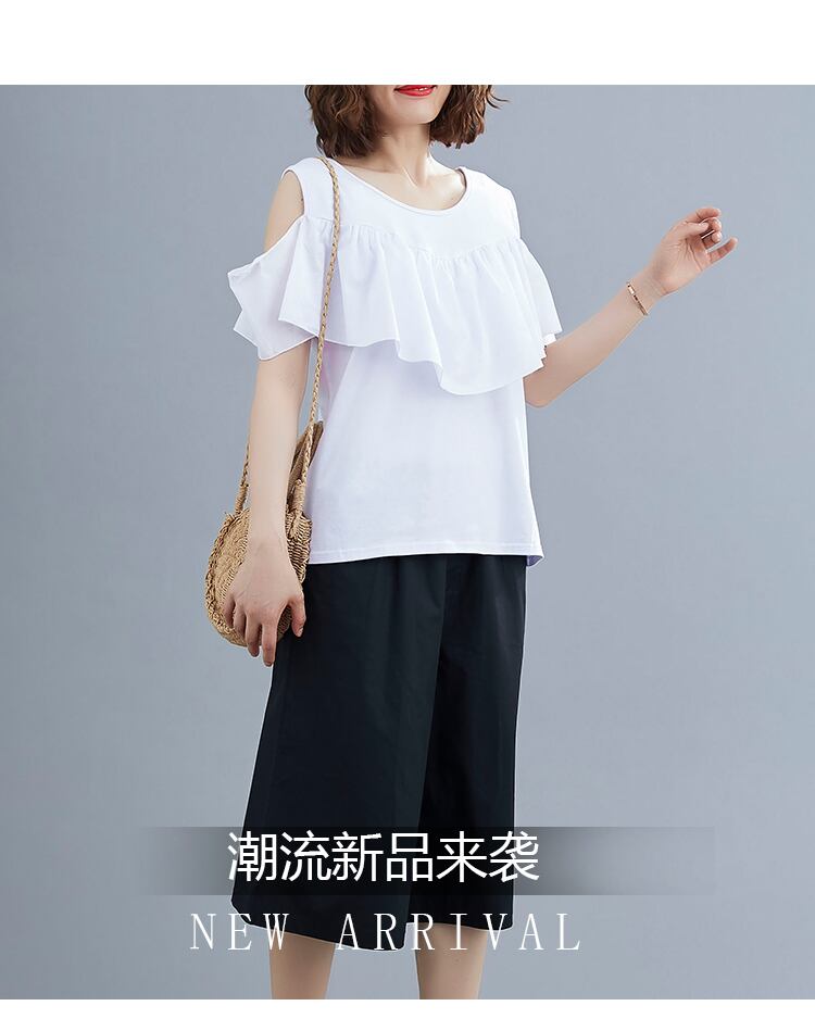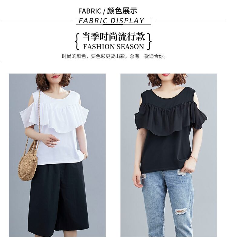 eigntrade特大サイズ婦人服太った姉妹ヨーロッパとアメリカ南島ストラップレスフリル半袖コットンTシャツシャツ太ったmmは薄かった 大きめサイズ TB2-68 TB2-6883258590208
