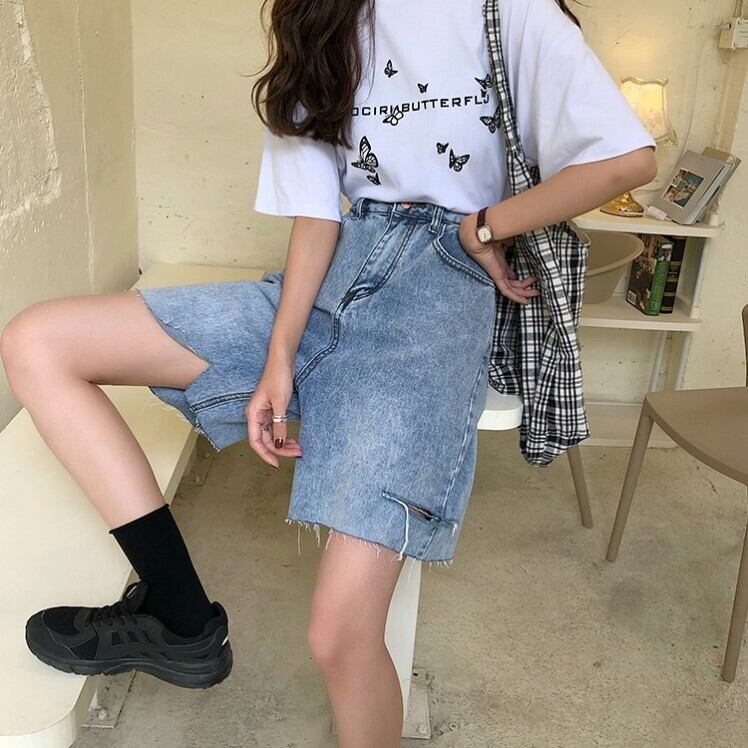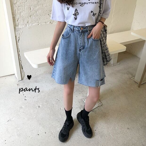夏の薄片は5ポイントジーンズの女性のストレートレッグ香港フレーバーを引き裂き、ルーズで薄いハイウエストワイドレッグAラインショーツタイドイン サマー 夏物 ブルマー TB2-6 TB2-650457950824