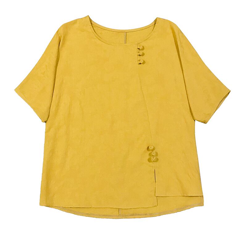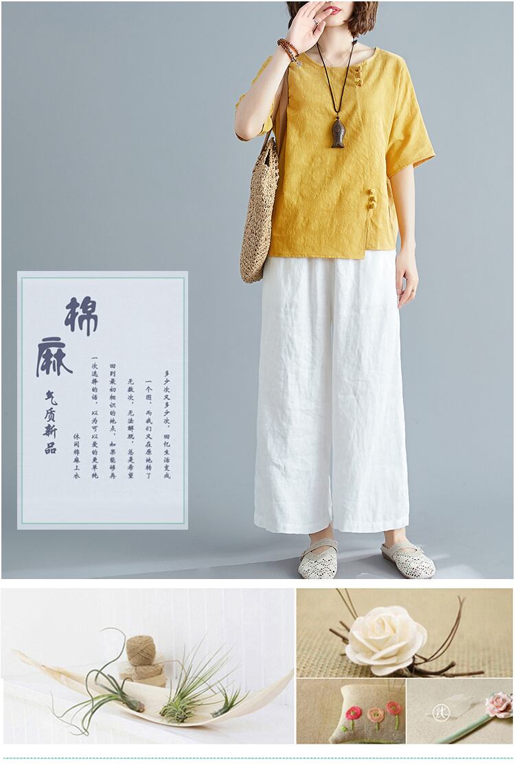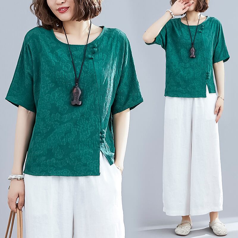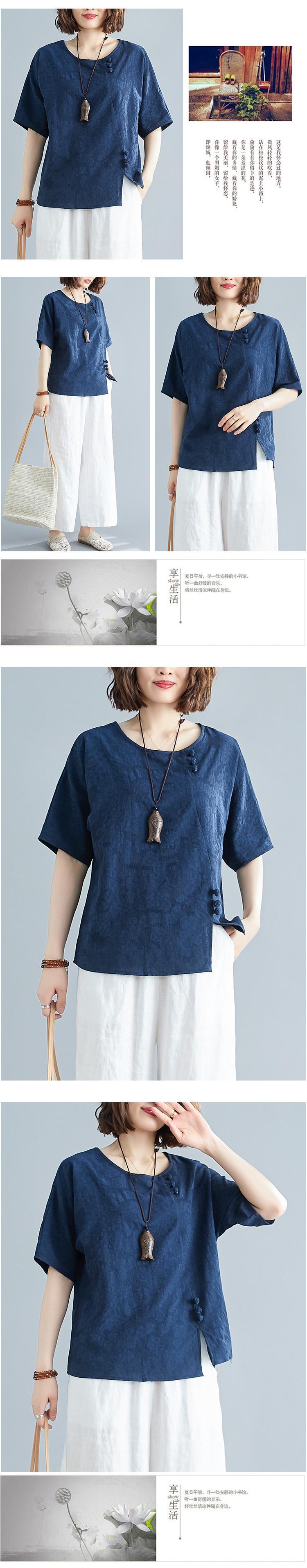 2021年夏のエスニックスタイルのレトロなジャカードディスクボタンコットンとリネンの半袖Tシャツルーズで薄いウエスタンスタイルの女性の年齢を減らすシャツ サマー 夏物 TB2-12 TB2-1287239018087