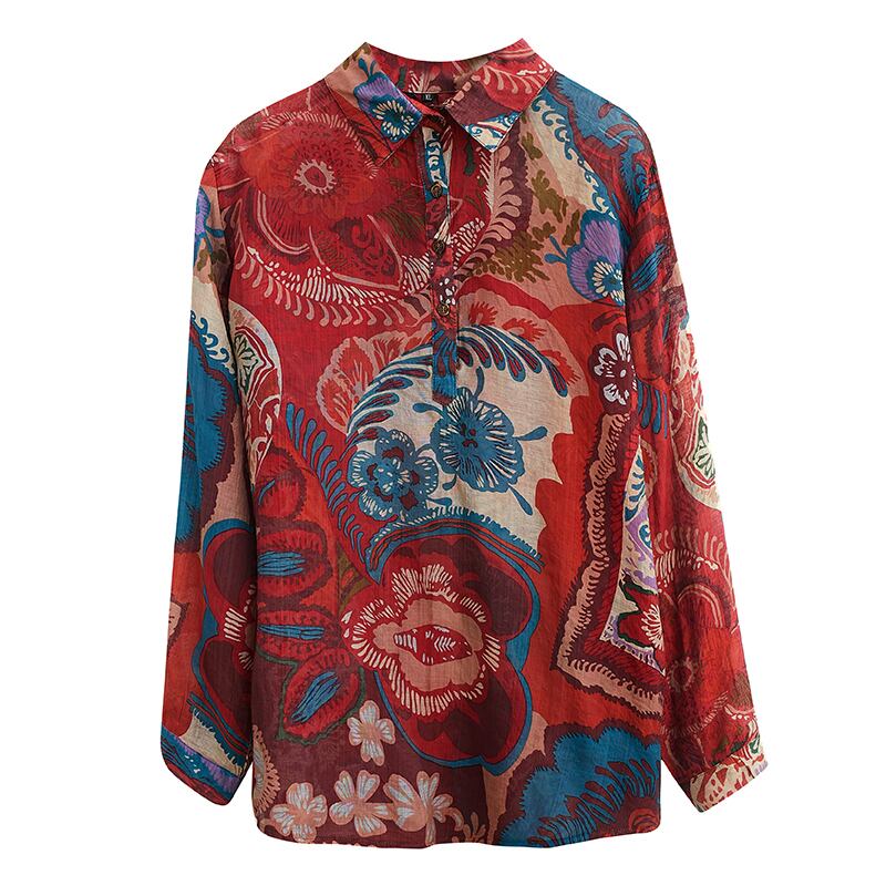 2021年春の新作ナショナルスタイルルーズプリントシャツレディースウエスタンスタイル長袖中年マザーズフローラルブラウス ロング スプリング 春物 花柄 TB2-12 TB2-1236075885637