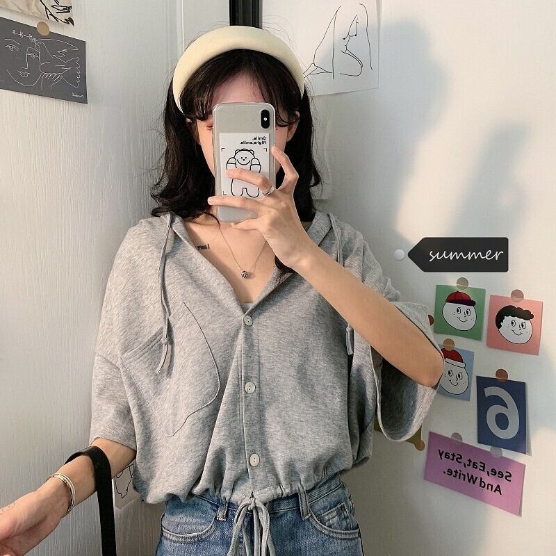 怠惰なスタイルのフード付き半袖トップ女性原宿スタイルの2021バージョンオールマッチ薄いルーズ半袖Tシャツトレンド ショート ハーフスリーブ かわいい TB2-6 TB2-621200232512