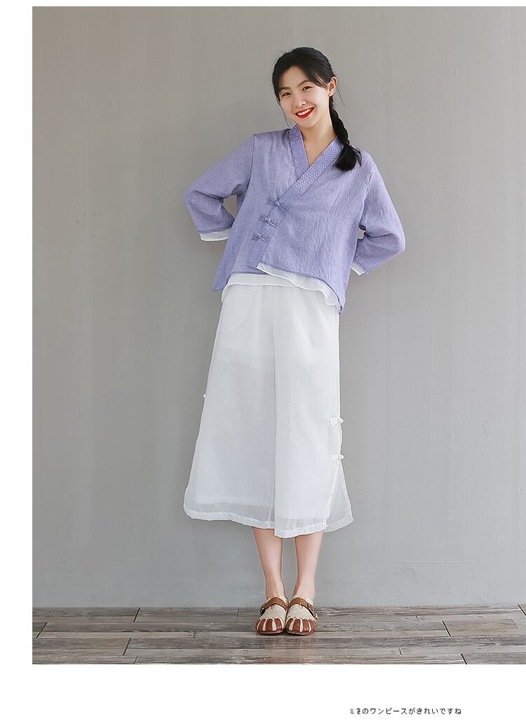 2021年夏の綿と麻の漢服二層刺繡ブラウス女性レトロ文学ディスクボタン禅茶サービスシャツ コットン 刺繍 サマー 夏物 TB2-12 TB2-1276038971725