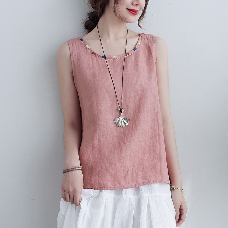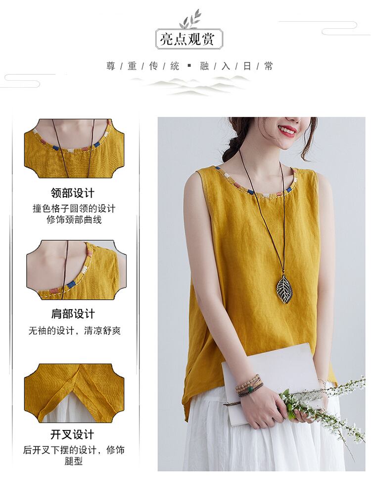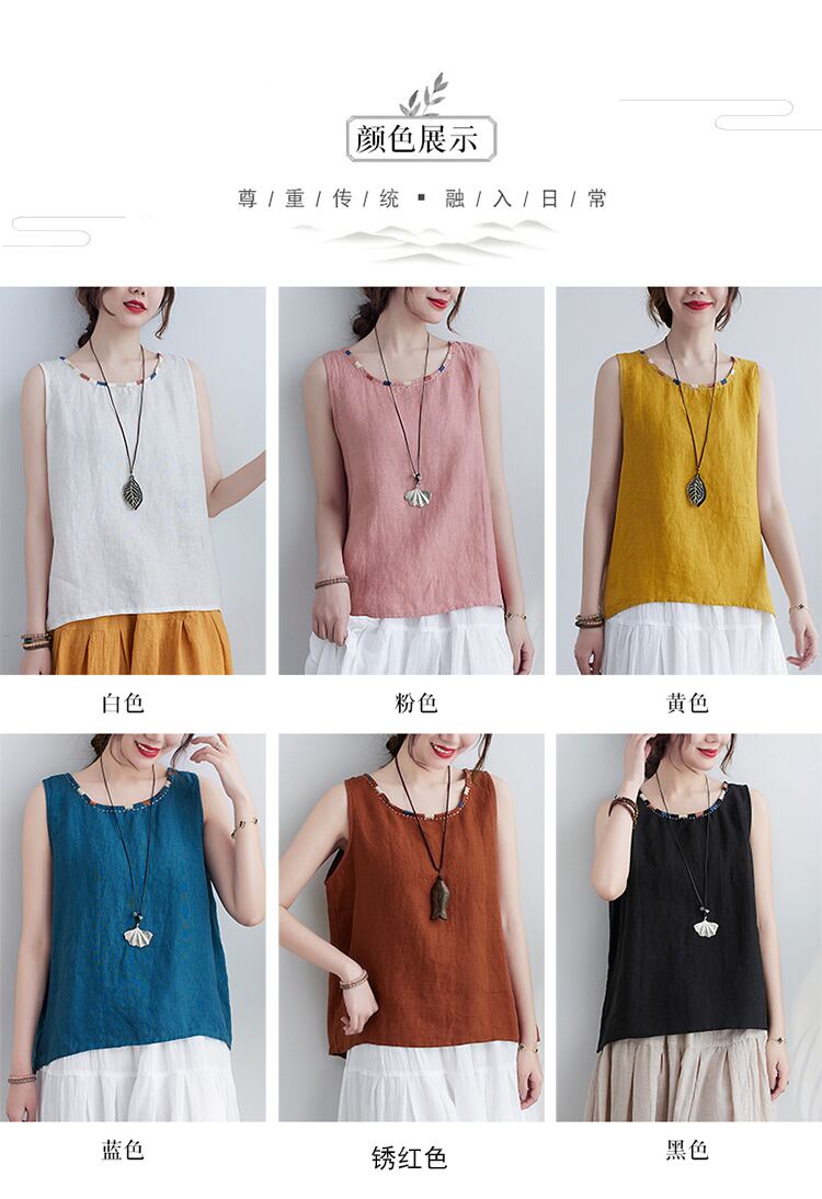 夏のレトロな文学とアートカラーマッチングラウンドネックコットンとリネンベストレディースオールマッチアウタージャケットルーズカジュアルサスペンダーボトミングシャツ サマー 夏物 Oネック TB2-12 TB2-1262151961822