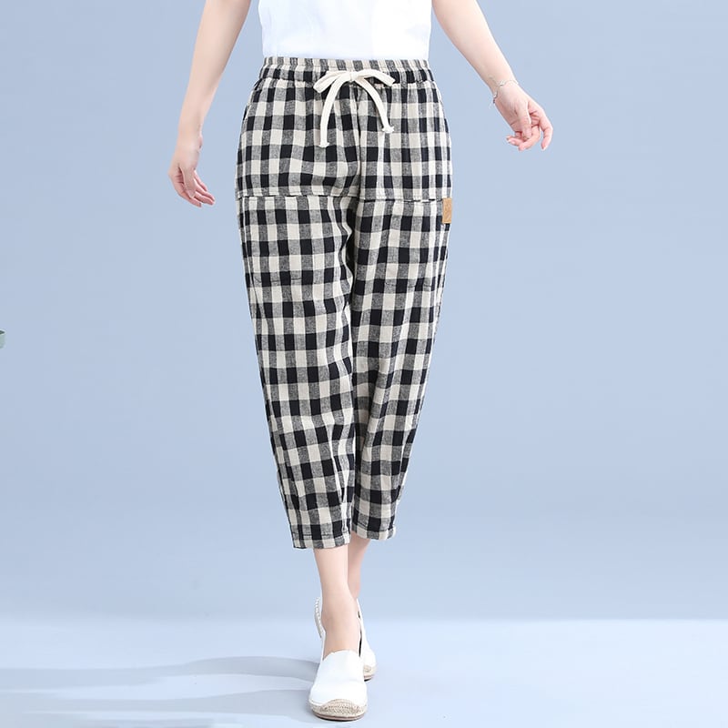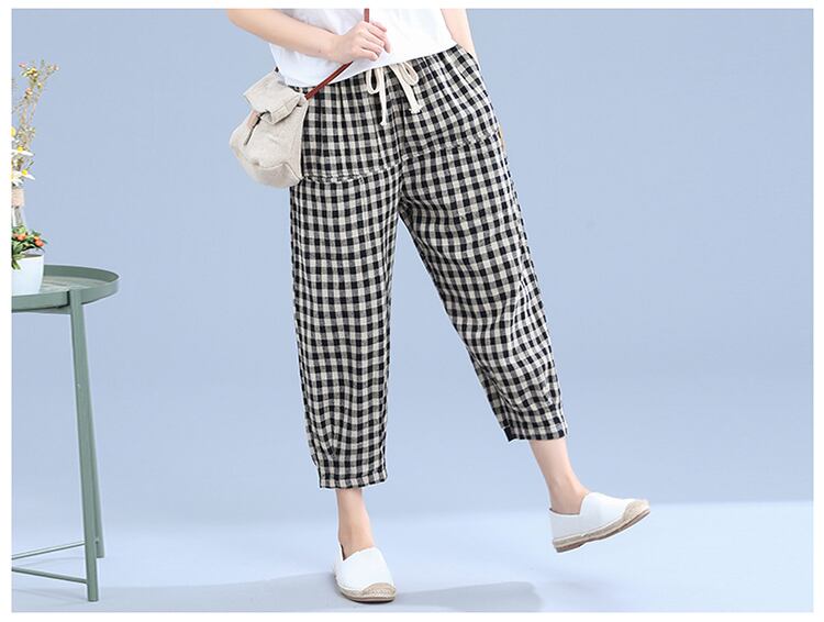 2020年夏のニュースタイルウエスタンスタイル年齢を減らすコットンリネングリッド子供脂肪mmラージサイズ痩身カジュアルファッションハーレムパンツ 大きめサイズ サマー 夏物 TB2-12 TB2-1224206719947