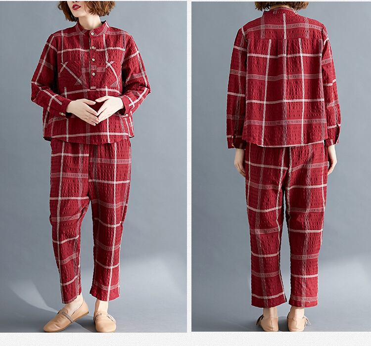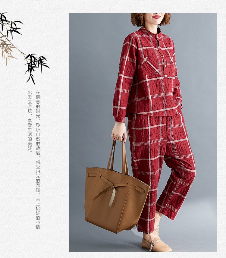 リテラリーコットンとリネンのスーツレディース秋新作ラージサイズシャツルーズパンツウエスタンスタイルのリネンハーレムパンツツーピーススーツ 大きめサイズ オータム 秋物 TB2-12 TB2-1267846671179