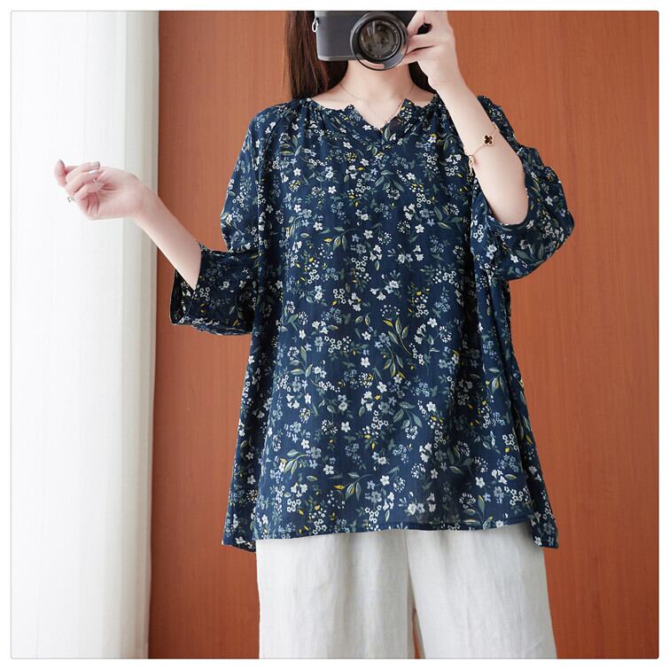 2021年夏プラスサイズ文芸脂肪MMプリントフローラルは薄くてオールマッチのTシャツ半袖シャツトップ女性 大きめサイズ サマー 夏物 花柄 TB2-12 TB2-1216900199563