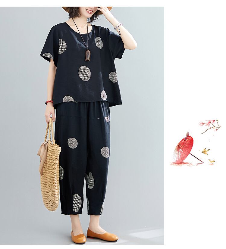 文学と芸術レトロな綿とリネンのスーツ女性の夏の新しいスタイルプラスサイズ脂肪mm母カバー腹ワイドレッグパンツリネンツーピーススーツ コットン 大きめサイズ サマー 夏物 ワイドパンツ TB2-12 TB2-1248626261279