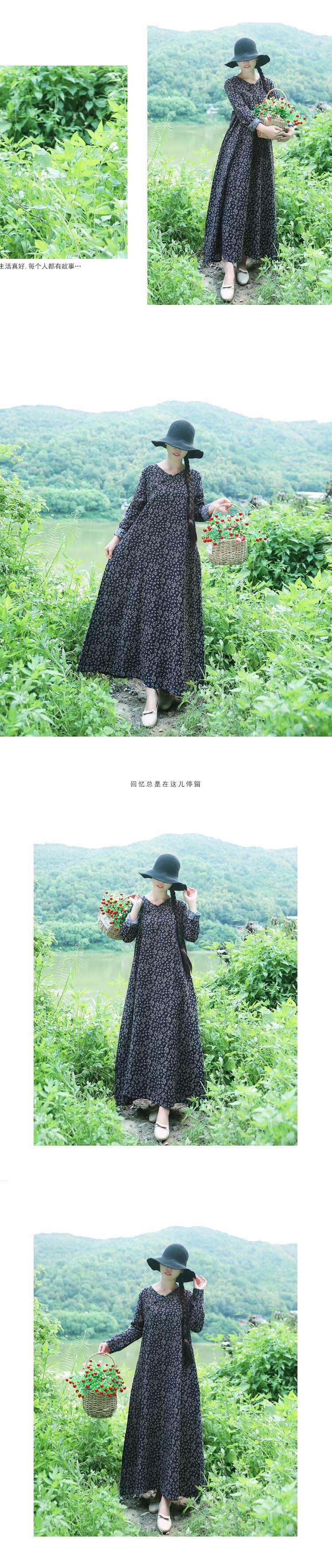 2021年春の新しいナショナルスタイルのファットMMレディースレトロラージサイズルーズ長袖コットンとリネンプリントのロングドレス 大きめサイズ スプリング 春物 TB2-12 TB2-1213979129518