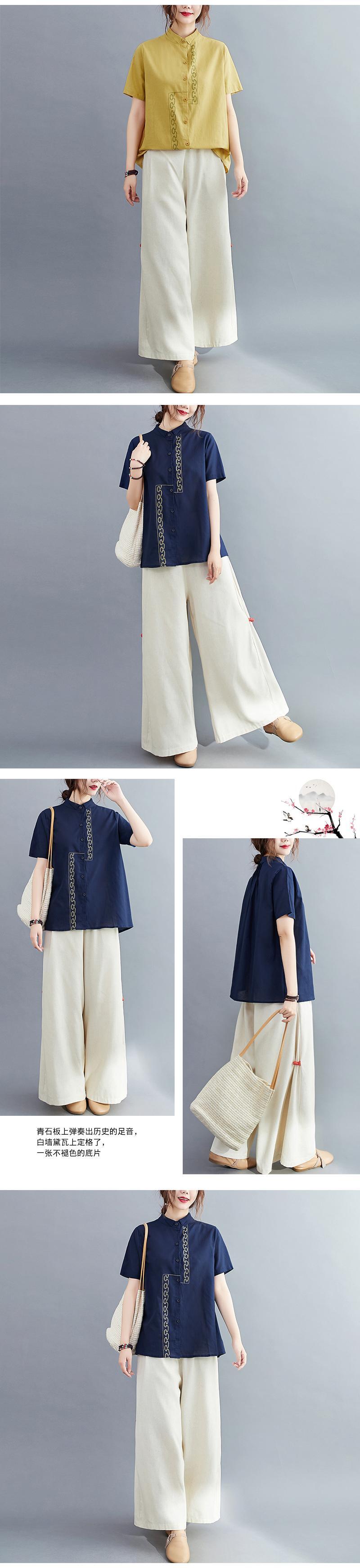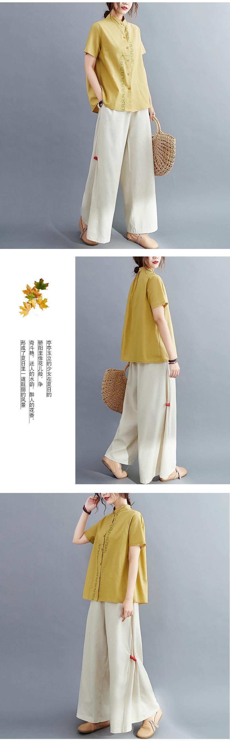 2021年夏の新作ルーズカジュアル文芸綿とリネンスーツレディース半袖シャツワイドレッグパンツツーピースレディース コットン サマー 夏物 TB2-12 TB2-1291186948623