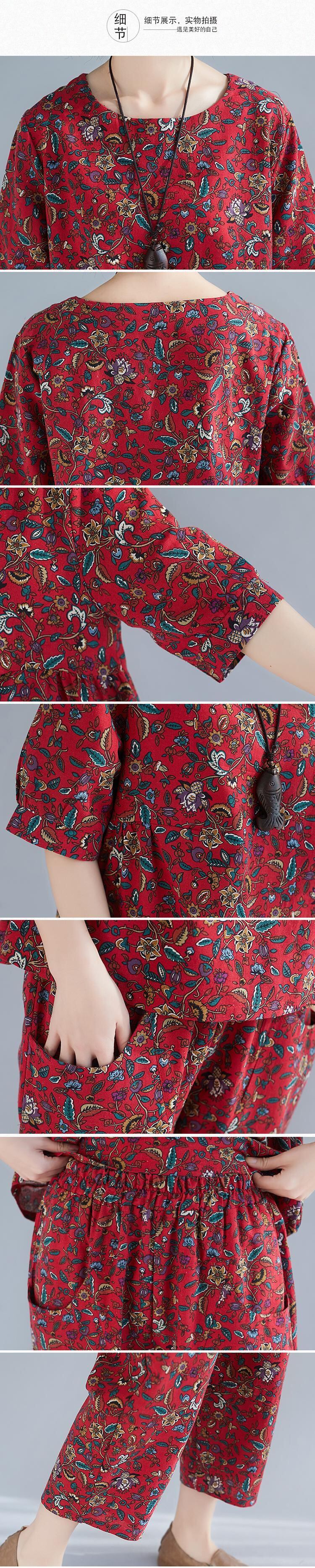 夏の新作レトロカジュアルコットンとリネンのスモールフローラルスーツ女性の年齢削減は、ワイドレッグパンツのリネンファッションツーピーススーツを薄くしていました サマー 夏物 花柄 TB2-12 TB2-1278157396030