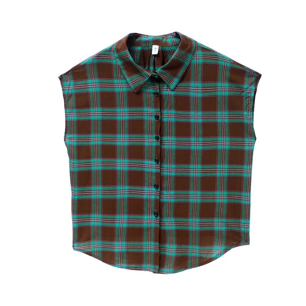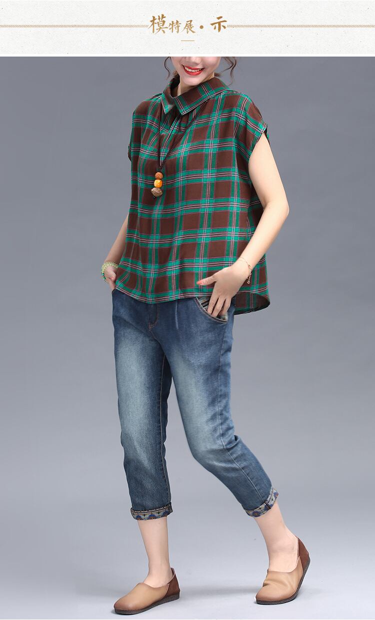 2021年夏のレトロな文学的な綿の格子縞のシャツの女性の半袖ルーズウエスタンバックシングルブレストカジュアルトップ コットン サマー 夏物 TB2-12 TB2-1277186006906