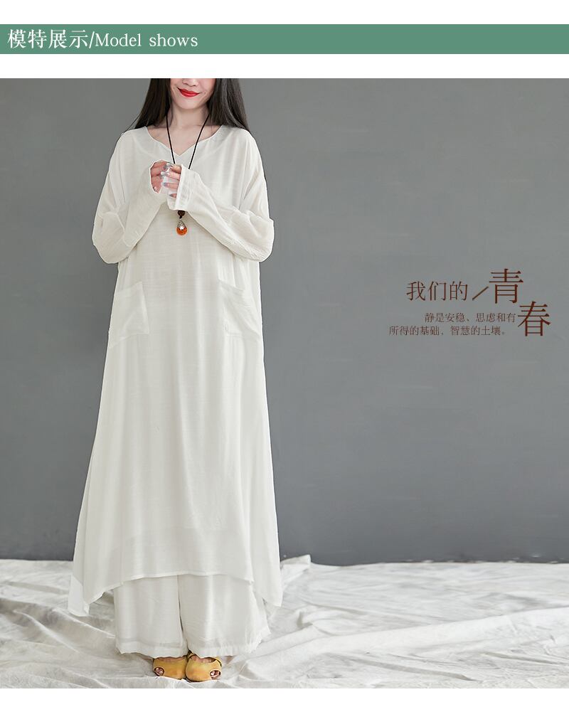2021年春の文学と芸術レトロな綿、リネン茶服瞑想服スーツステージ服ルーズでエレガントなツーピースドレス コットン スプリング 春物 TB2-12 TB2-121874230333