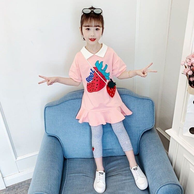 ガールズサマースーツ2020新しいウエスタンスタイルサマーショートスカートスーツファッションキッズ半袖ツーピーススーツ 夏物 TB2-5 TB2-572295732571