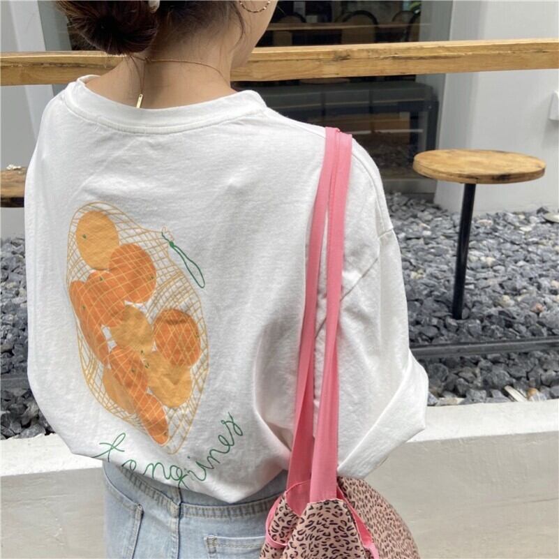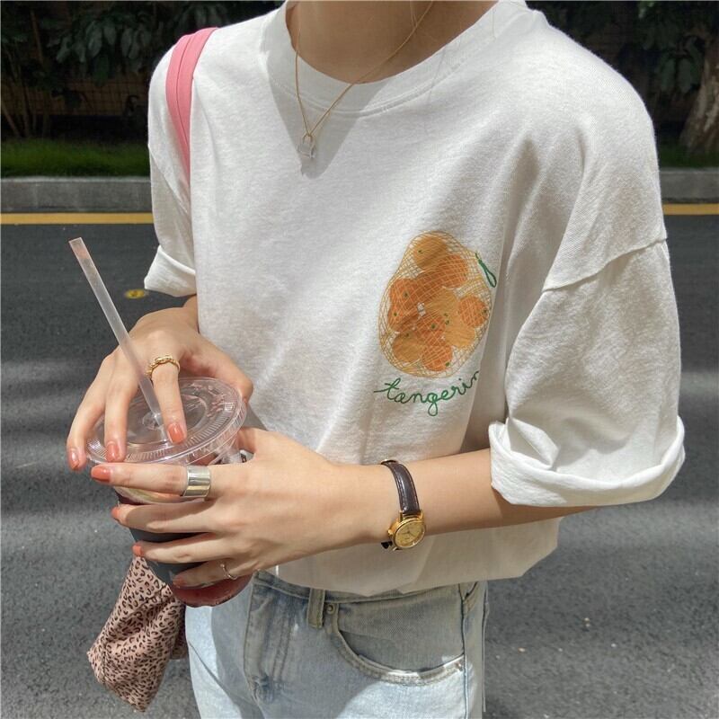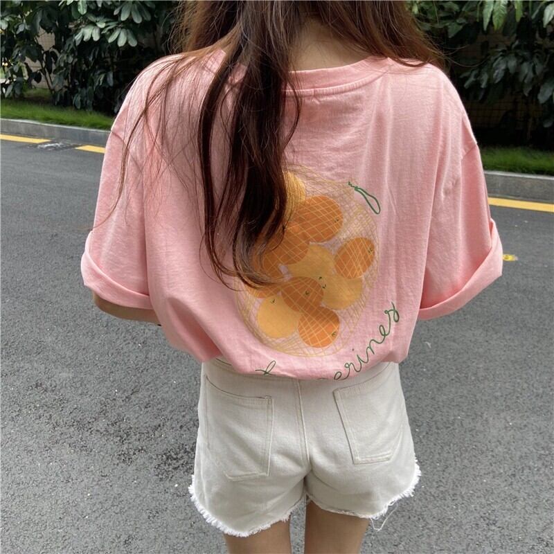 インスタイドスーパーファイアオレンジコットンプリントTシャツオールマッチホワイト半袖ボトミングルーズオールマッチシャツ女性のバージョン TB2-6 TB2-680761449444