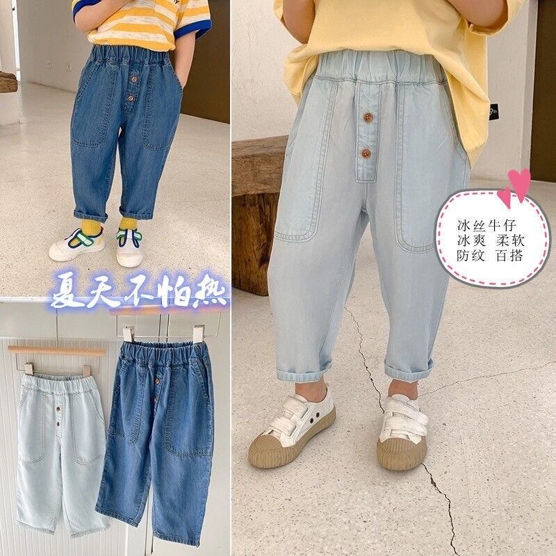2021年夏の男の子と女の子のテンセルコットンモスキートパンツスタイルウエスタンスタイルの子供用の薄いルーズクロップドパンツジーンズ サマー 夏物 TB2-5 TB2-599234318470