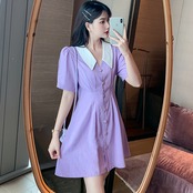 太った姉妹2020年夏お腹の痩身ドレス女性のウエスト気質年齢減少シングルブレストスカートプラスサイズの婦人服 大きめサイズ サマー 夏物 TB2-10 TB2-1060700175170