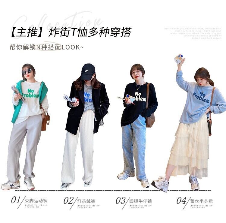 白いTシャツの女性の長袖2021年の新しい早春の起毛ボトミングシャツ、折りたたみ式Tシャツコットンルーズトップ ロング ホワイト スプリング 春物 TB2-6 TB2-611925934784