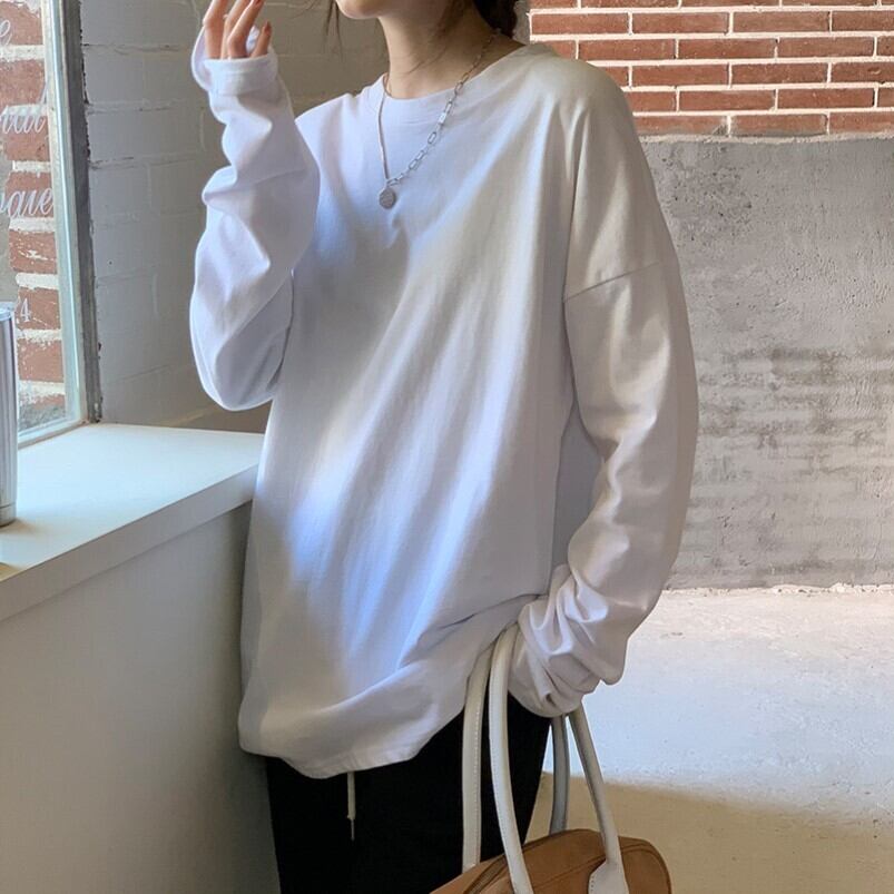 長袖コットンTシャツの女性の春と秋の新しいスタイルの白いボトミングシャツルーズホワイトTブラックトップインタイドのバージョン ロング スプリング 春物 オータム 秋物 TB2-6 TB2-61046194205