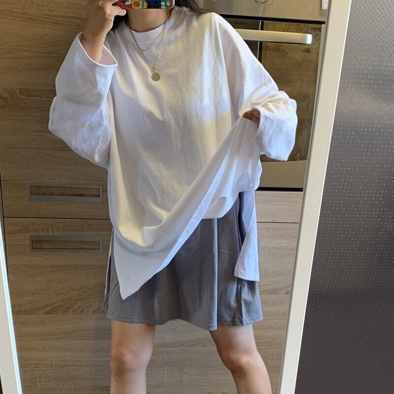レディースホワイト長袖Tシャツルーズコットン裏地裏地スプリットスタイルワイルドミドル丈ボトミングシャツレディース春秋 ロング スプリング 春物 オータム 秋物 TB2-6 TB2-622473116897